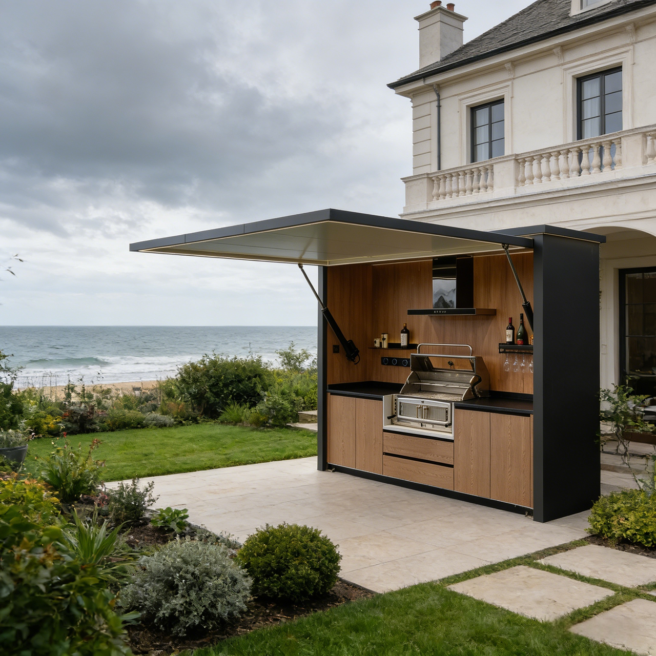 Whether it’s bright sunshine or sudden rain – with the innovative sliding door, you are protected. It serves as a stylish cover and makes grilling possible in any weather. When closed, The Pltinum KITCHEN looks minimalist and modern, a real design statement that blends harmoniously into any environment.