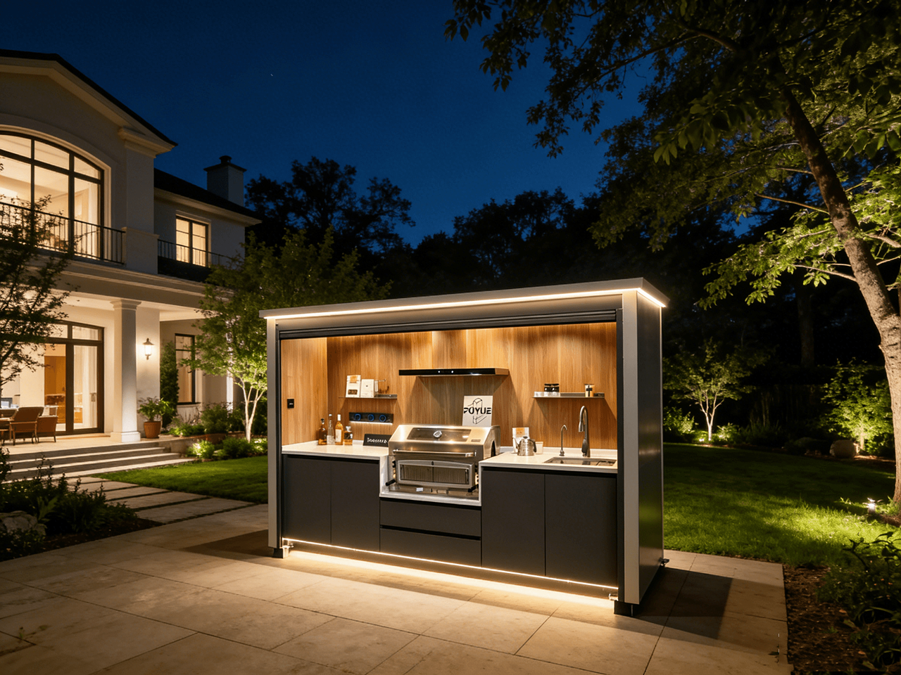 What makes it special? The Platinum Kitchen blends perfectly into your garden. At first glance, you wouldn’t even notice that a fully equipped outdoor kitchen is hidden here. But with just the push of a button, it elegantly opens up, and the integrated LED lighting sets the perfect scene, creating an absolute “wow” effect for your guests.